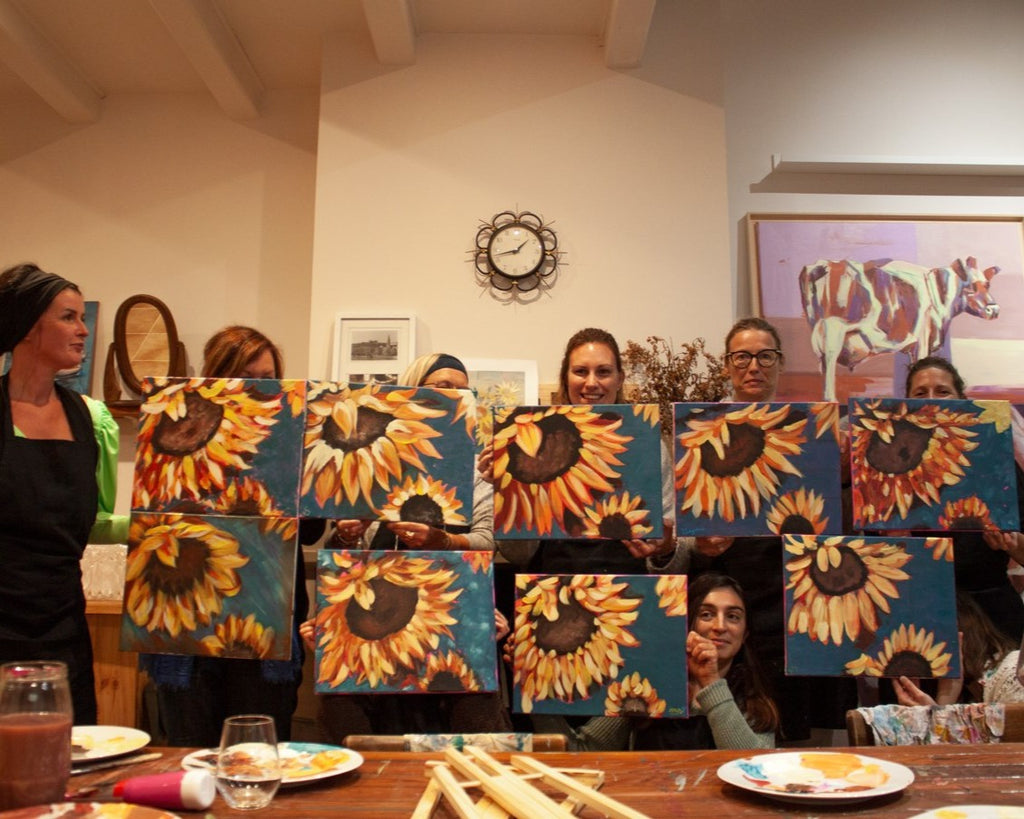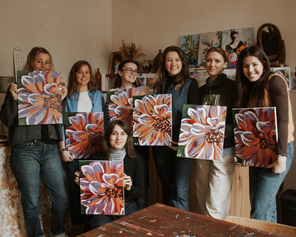 En 2023, je décide d’inviter 10 amies novices pour une soirée peinture. Avec quelques verres de vin et des conseils simples adaptés à chacune, la magie opère : déconnexion totale, fierté, et surtout… du plaisir ! Ainsi naissent les soirées DRINK&PAINT 🎨🍷.